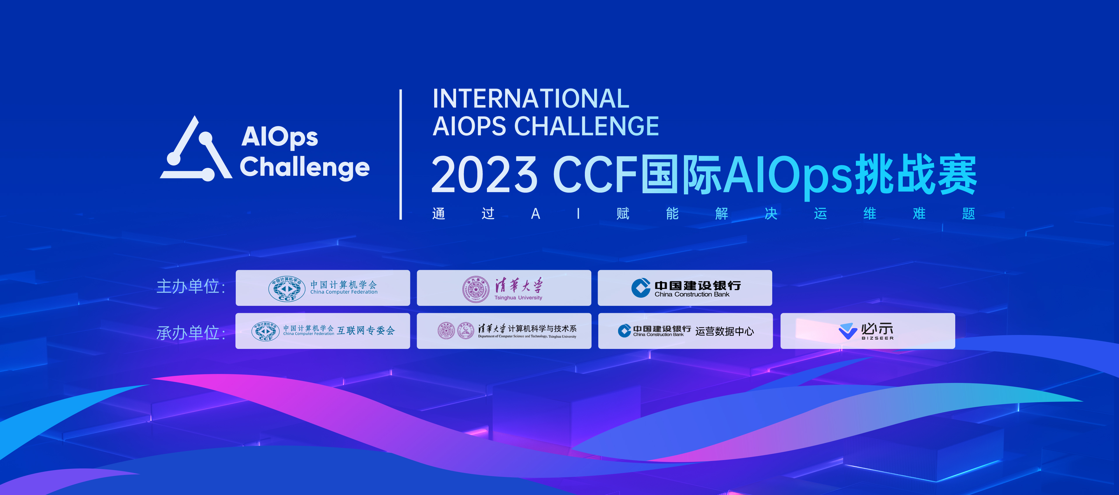 本届国际AIOps挑战赛由中国计算机学会(CCF)、清华大学、中国建设银行股份有限公司联合主办;中国计算机学会互联网专委会、清华大学计算机科学与技术系、中国建设银行股份有限公司运营数据中心、北京必示科技有限公司承办。
