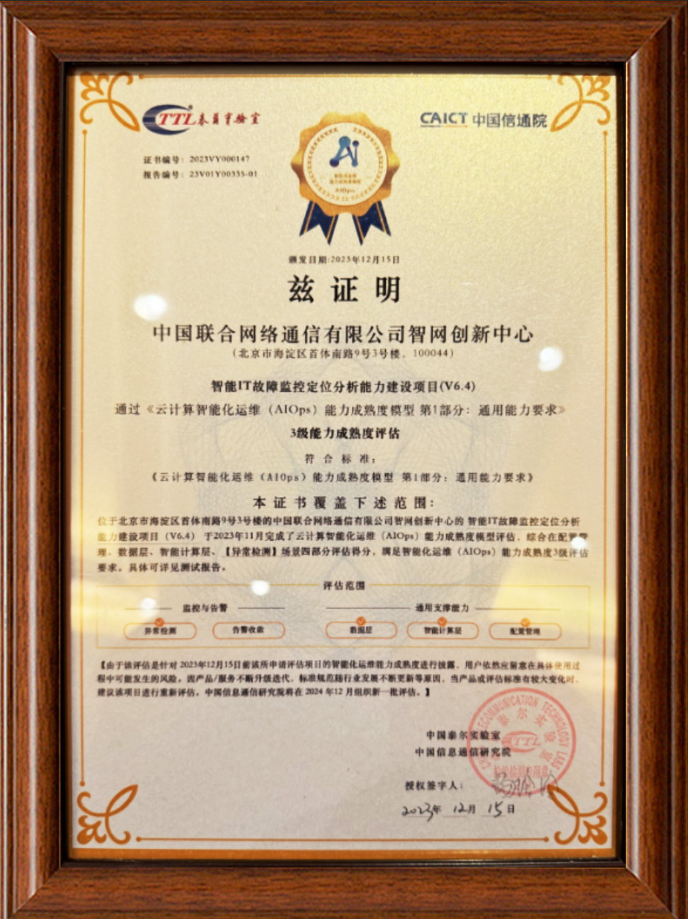 2023年12月15日,中国信息通信研究院隆重公布了智能化运维AIOps系列标准最新批次评估结果。