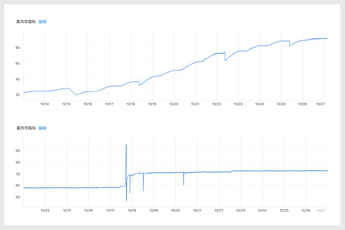 运维领域中,我们经常会对机器指标进行监控,来反映机器是否健康运行,下图为不同监控对象的内存指标。
