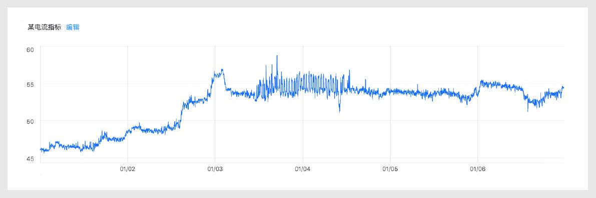 时间序列在各个领域都很常见,下图是物联网领域中某电机的电流大小指标。