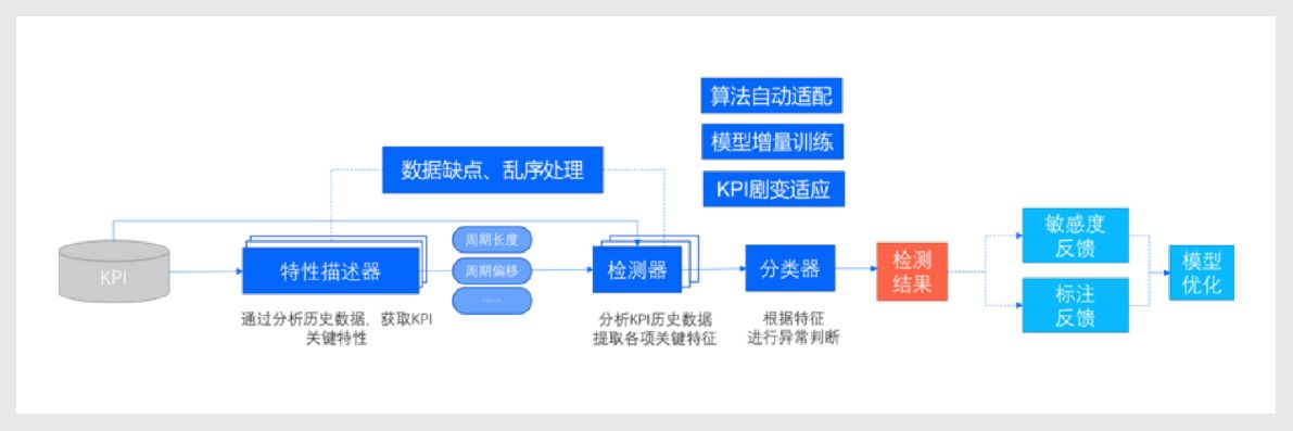根据实际场景中遇到的各种挑战,以及参考各个算法擅长的场景类型,必示异常检测的整体架构设计如下图所示:
