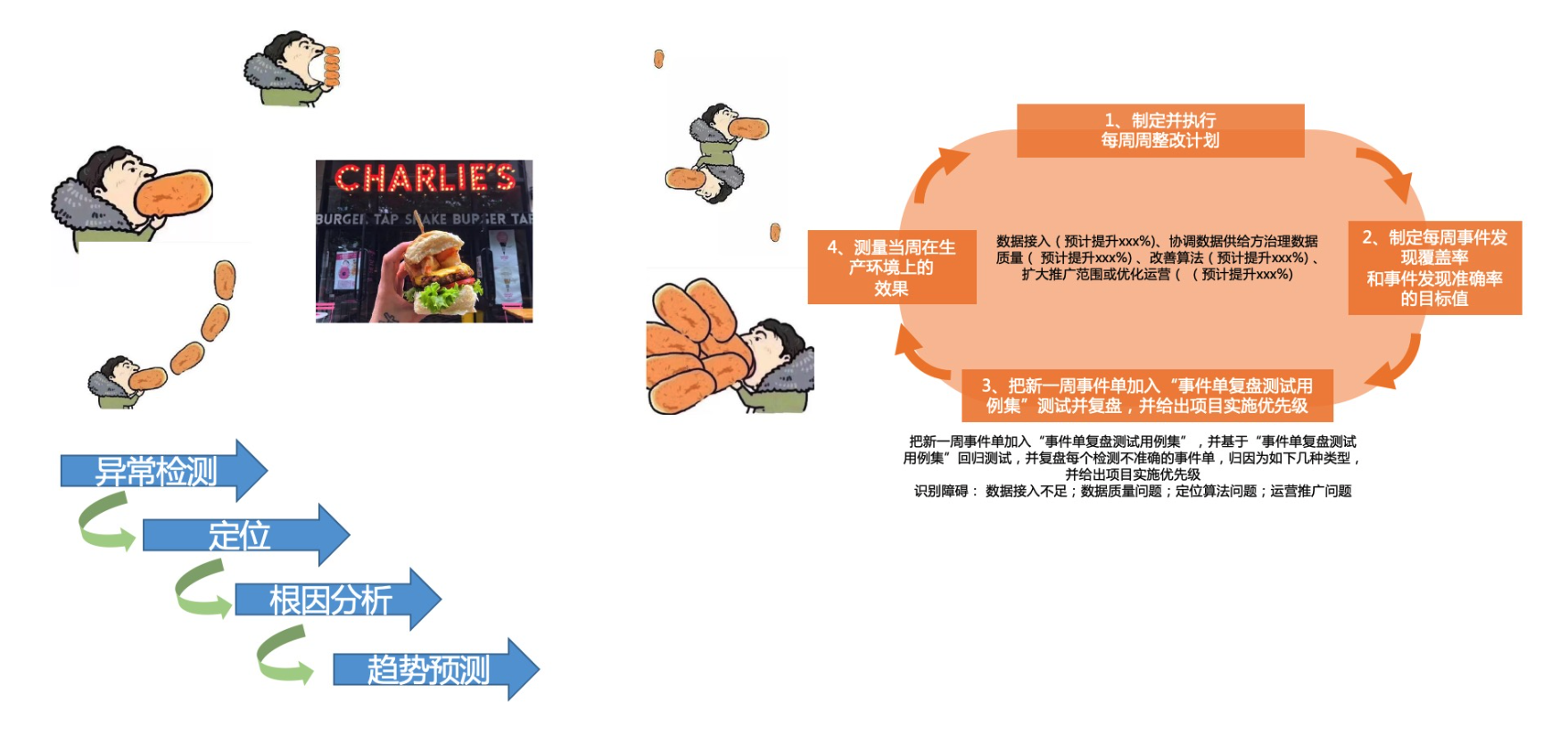 过程中通过当前对手边影响“出效果”的失效因素在细节上不断微雕,从量变到质变,使他们向着“出效果”不断迈进。如:通过持续的白名单方案实施,解决低效数据的问题,保障数据质量和算法对齐,提升告警准确率;通过持续的指标扩充与精细化,不断提升故障定位的精度和准度;通过告警规则的持续优化,让告警通知趋于真实可靠。