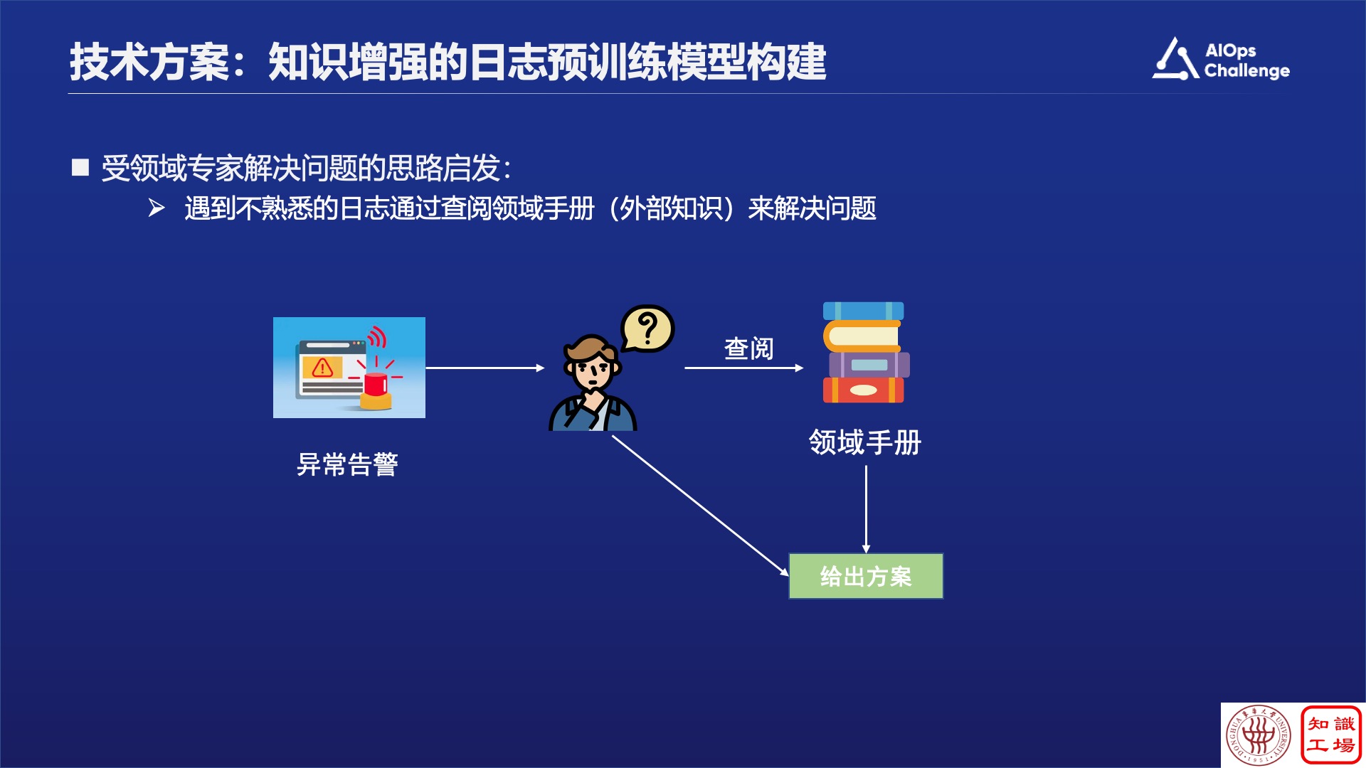 针对这三个挑战,我们受专家解决问题的思路启发提出了知识增强的方案,会去从领域手册里查询补全知识。