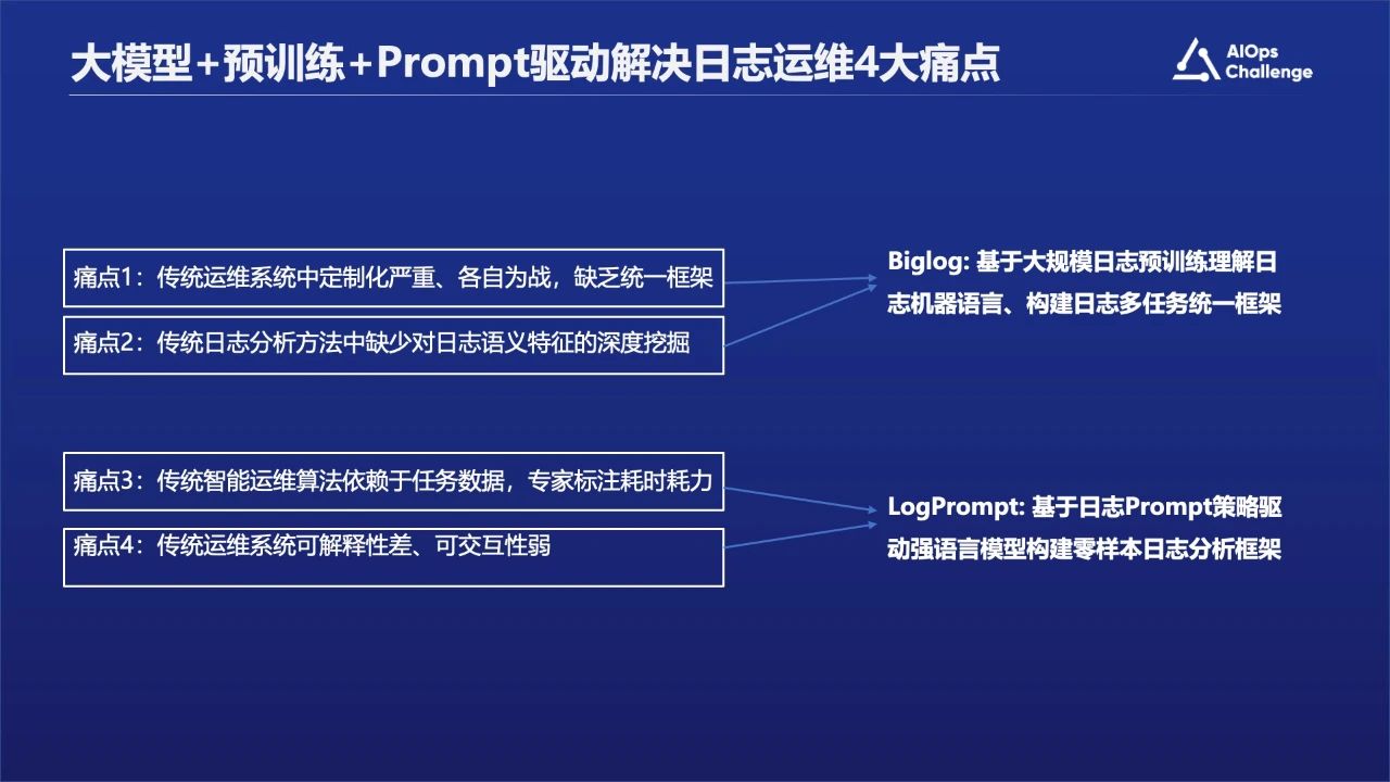 另外一个就是LogPrompt,基于日志适用的Prompt策略驱动强语言模型构建零样本日志分析框架,通过领域prompt策略驱动语言模型,构建零样本的日志分析框架,解决图片上痛点3和痛点4的问题。