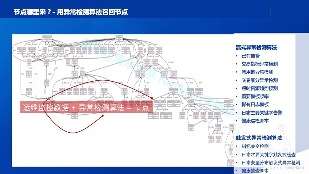 我们会发现,之前提过的原本并列在一起的各种异常检测算法(如下图),现在通过这张图把它们连在一起,所有的运维排障工作通过这个图实现了。